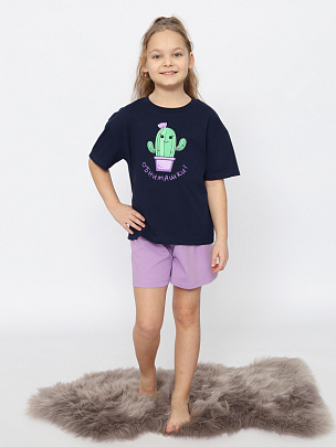 Пижама для девочки (футболка, шорты) лаванда